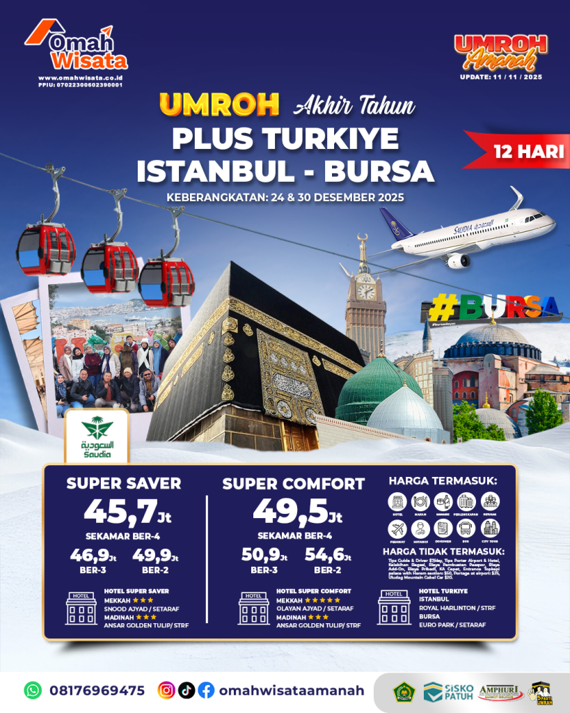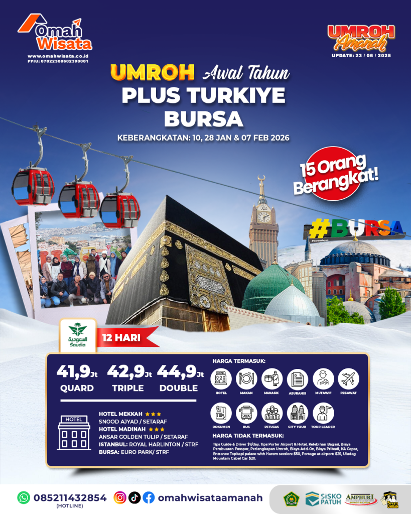 Tak hanya umroh reguler, Omah Wisata juga melayani perjalanan umroh plus ke negara-negara wisata lainnya, berikut Umroh Plus yang tersedia di Omah Wisata: