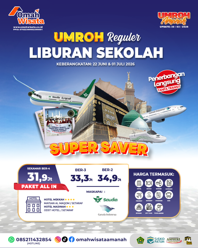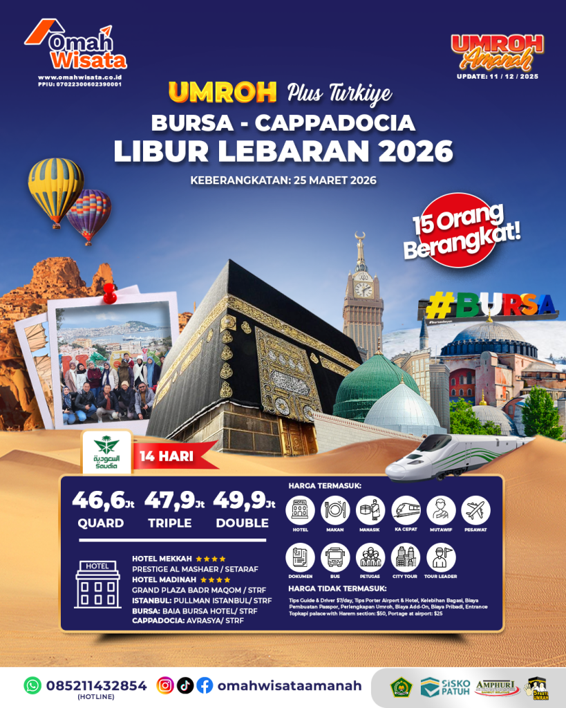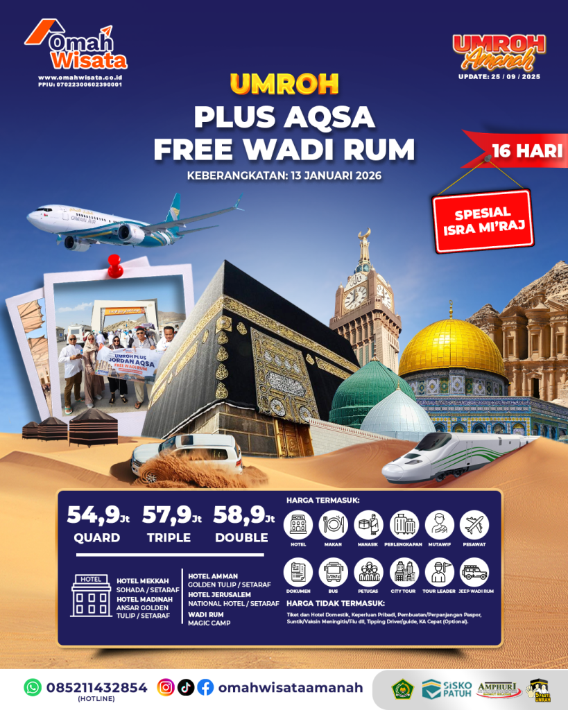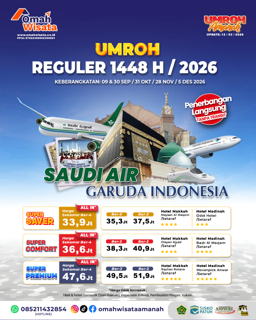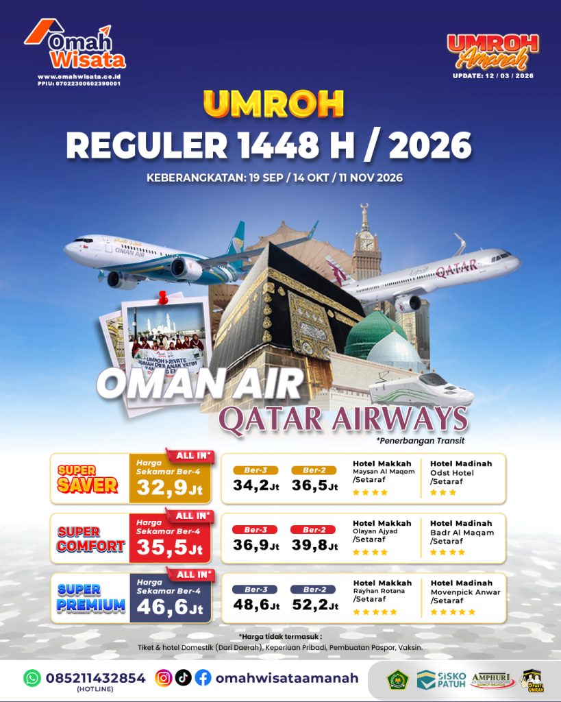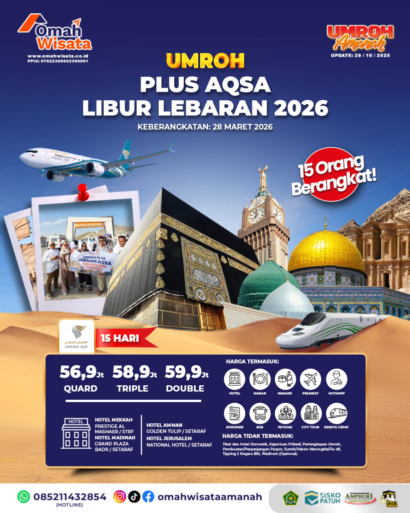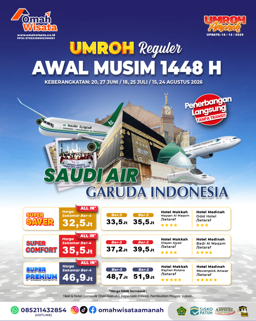 Pilih Paket Umroh bersama Omah Amanah Wisata, Kami memberikan harga terbaik dengan berbagai fasilitas dan akomodasi terbaik.